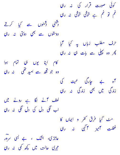 koyee Soorat qaraar kee nah raheeGham to Gham hai, Khushee Khushee nah rahee!