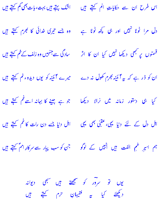 is t^araH un se Hikaayaat-e-alam kehte haiN *