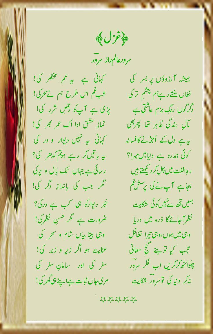 no kar dunyaa kee too "Sarwar" shikaayat