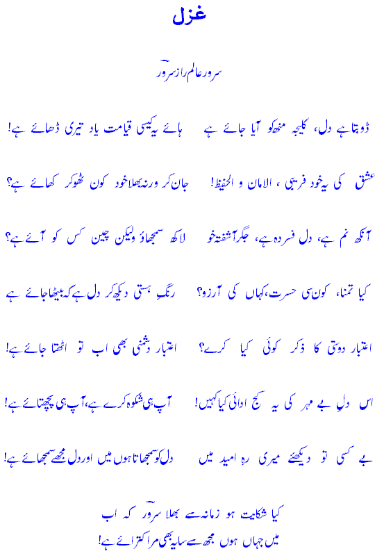 kyaa shikaayat ho zamaaneh se bh`alaa "Sarwar" ke ab?