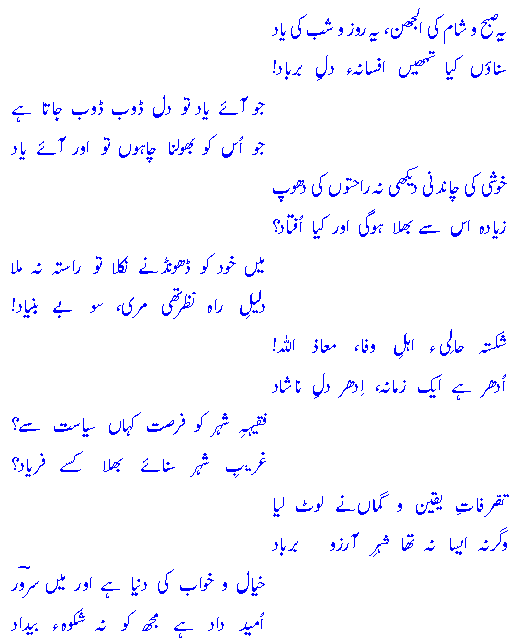 vagarnah aisaa nah th`aa shehr-e-aarzoo barbaad!