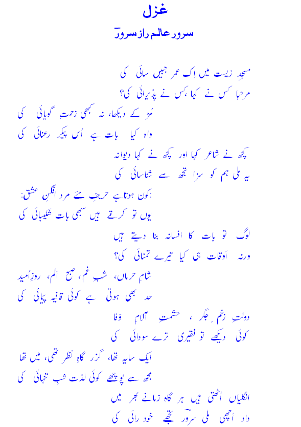 masjid-e-zeest meN ik u'mr jabeeN -saayee kee