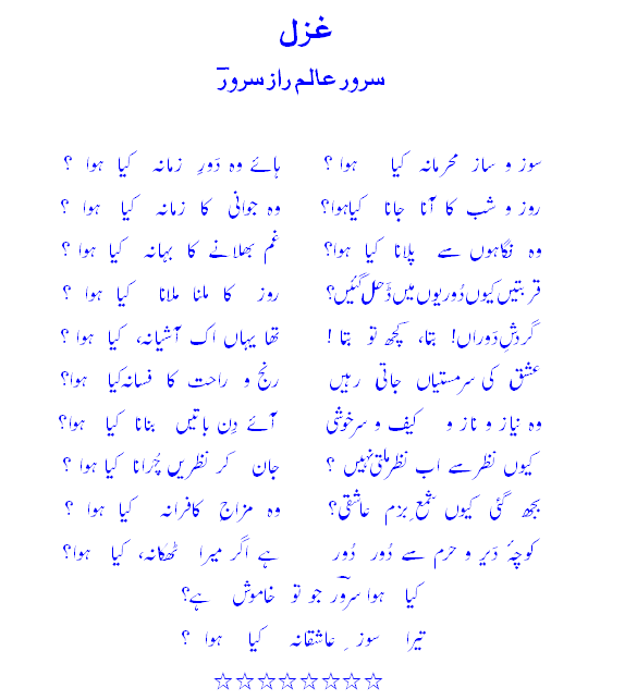 soz-o-saaz-e-meHramaanaa kyaa huwaa?haaYe woh daur-e-zamaanaa kyaa huwaa?